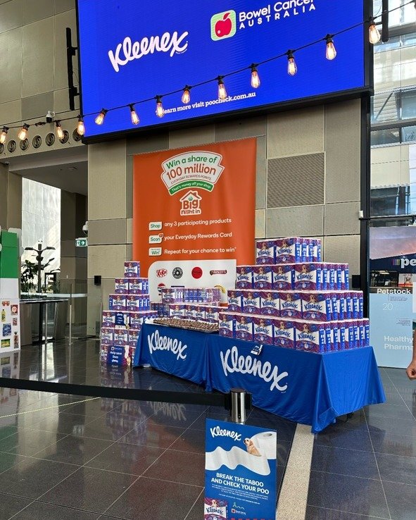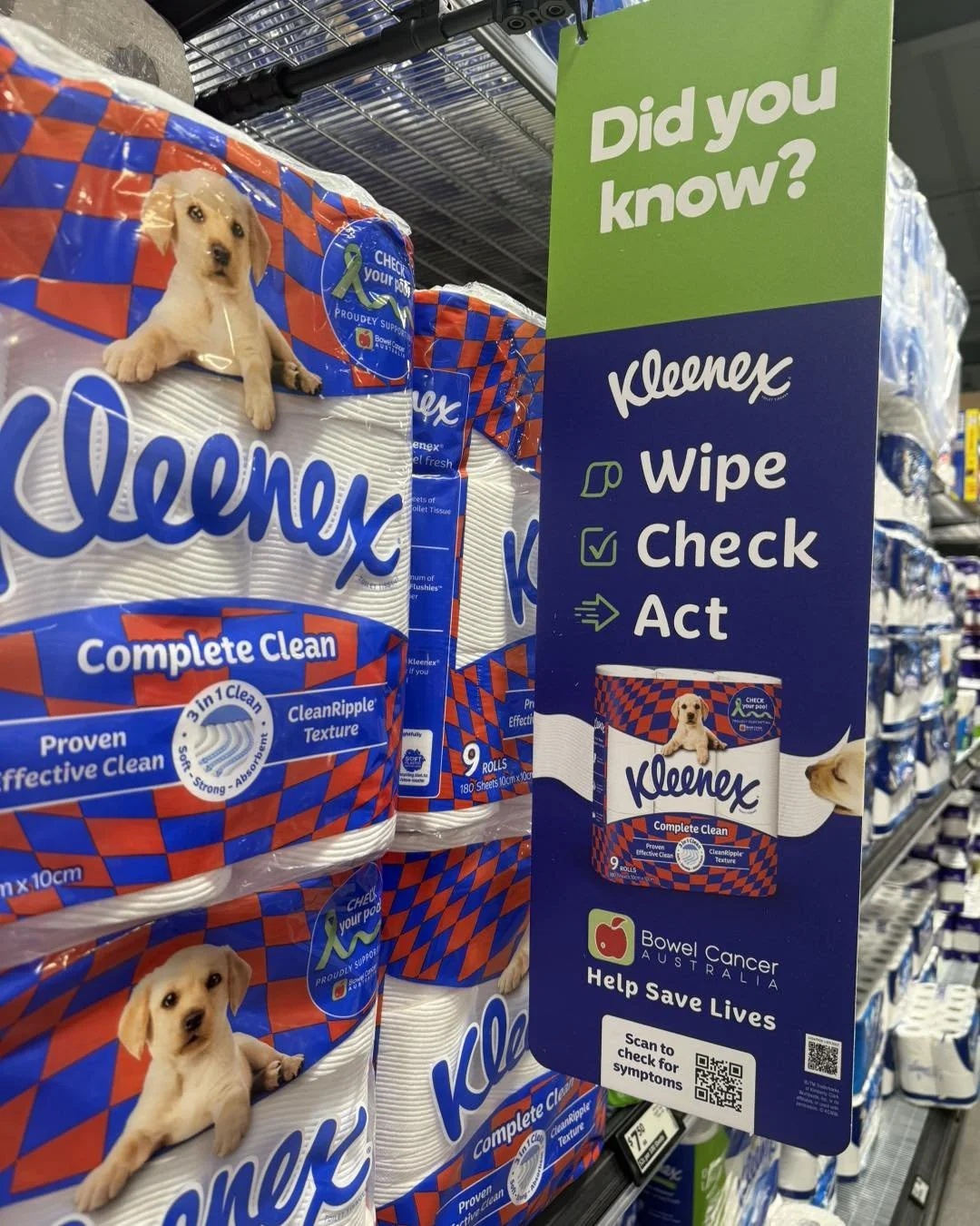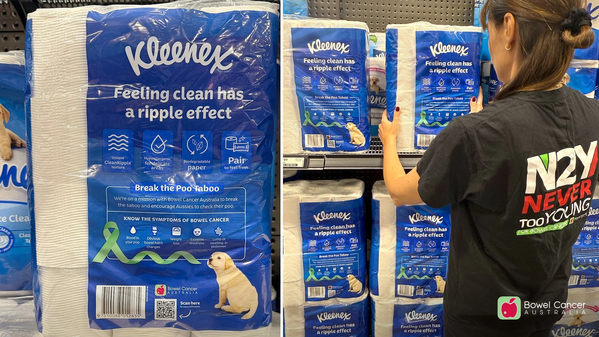 Our collaboration with Kleenex® continued to break the “poo taboo,” with bespoke packaging and messaging on loo rolls that encouraged Aussies to check their poo for signs of bowel cancer.